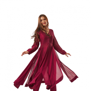 Slit style Kurti with pants comes with back tying for perfect fitting. It comes in a wine color.
