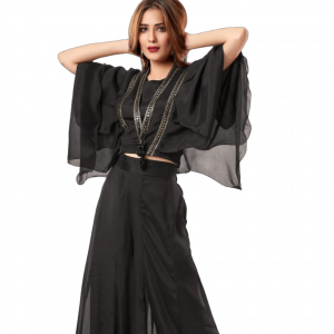 COORD SET : A kalli style plazo along with a ruffle crop top with textile jewellery