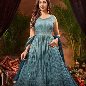 Lukhnovi style, Sequence touch dupatta georgett and bottom matching color legins will be given. It comes in a marine blue color.