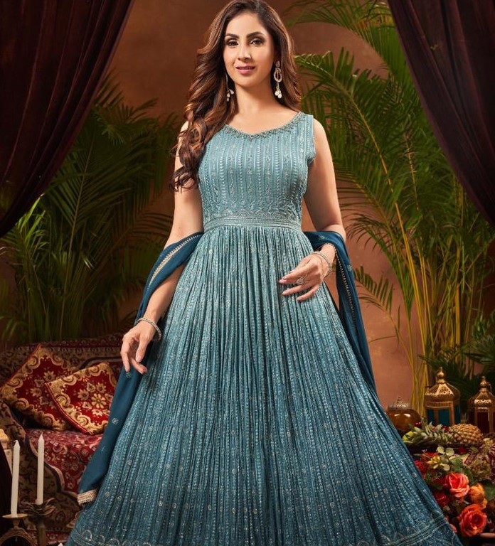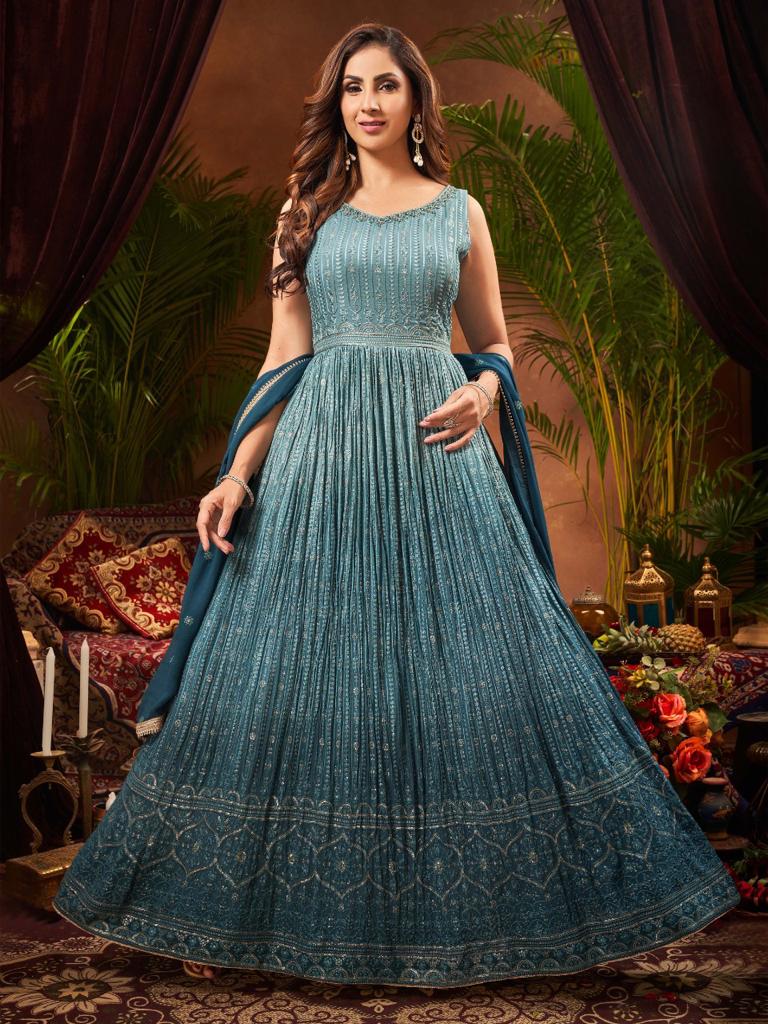 Lukhnovi style, Sequence touch dupatta georgett and bottom matching color legins will be given. It comes in a marine blue color.
