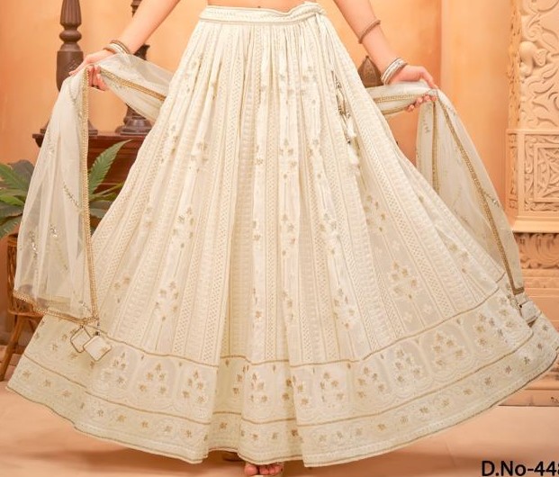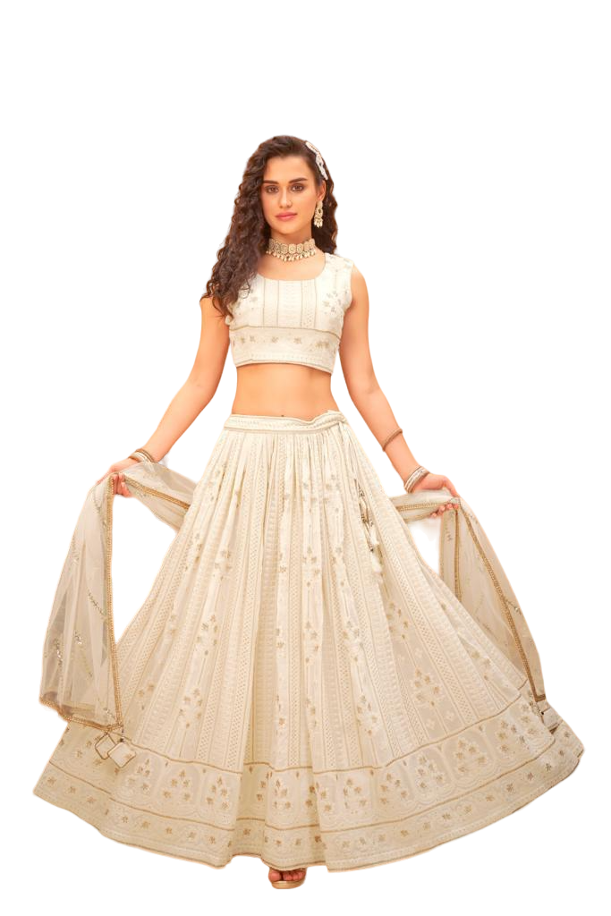 Lukhnovi Chili and ghagra. It comes in an elegant cream color.